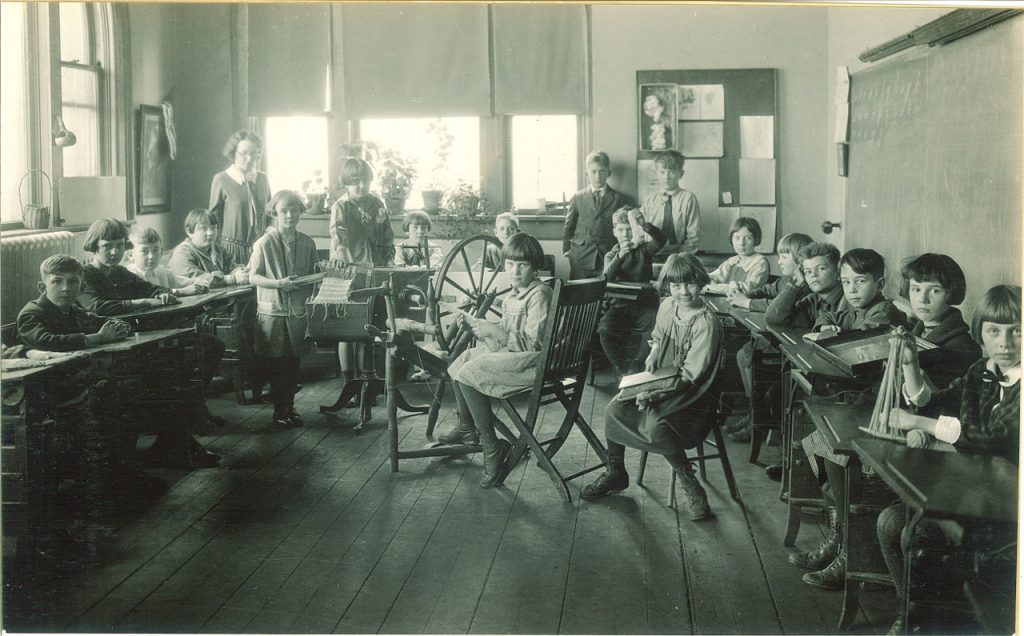 whataboutbobbed August 10, 2011 here’s looking at us, kids! classroom spinning and weaving demonstration, The University of Iowa elementary school, 1920s