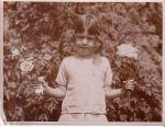 A pretty study at the National Rose Show which opened at the Royal Botanic Gardens, Regents Park, on Friday.The little girl is holding the ‘Mrs Winston Churchill’ rose in her left hand the ‘Queen Ena of Spain’ rose in the other.