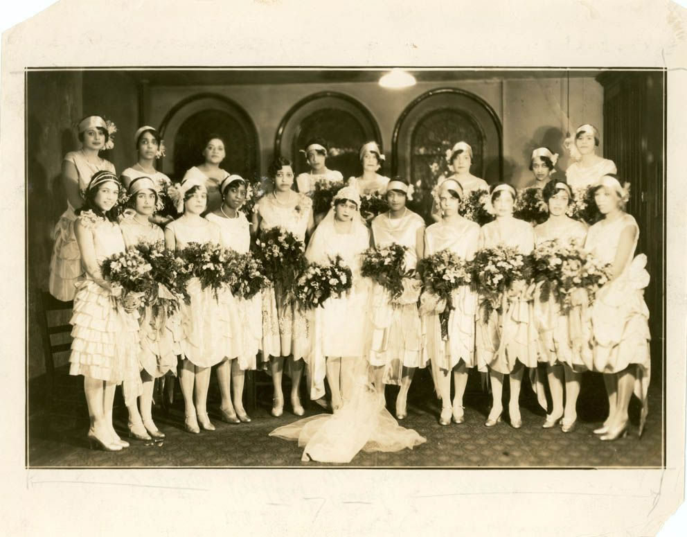 bride Yolande ‘daughter of W.E.B.’ Du Bois and her maids, at her wedding to Countee Cullen, New York, 1928