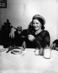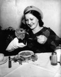 whataboutbobbed November 21, 2011 a woman is feeding cereal to a live turkey in a restaurant. The turkey is wearing a bib, 1930s stuffing turkey