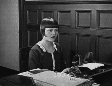 whataboutbobbed December 2, 2011 Buster Keaton’s secretary [uncredited actress :(] huffs & puffs & types like there’s no tomorrow, in Seven Chances