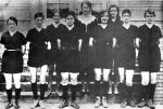 from Left to Right – First Row: Virginia Humphries, Mary Mccallister, Lucille Withrow, Virginia Iuler, Gertrude Butler, Nellie Whanger. Second Row: Virginia Butts, Miss Wilson – Coach, Anna Richmond Patton