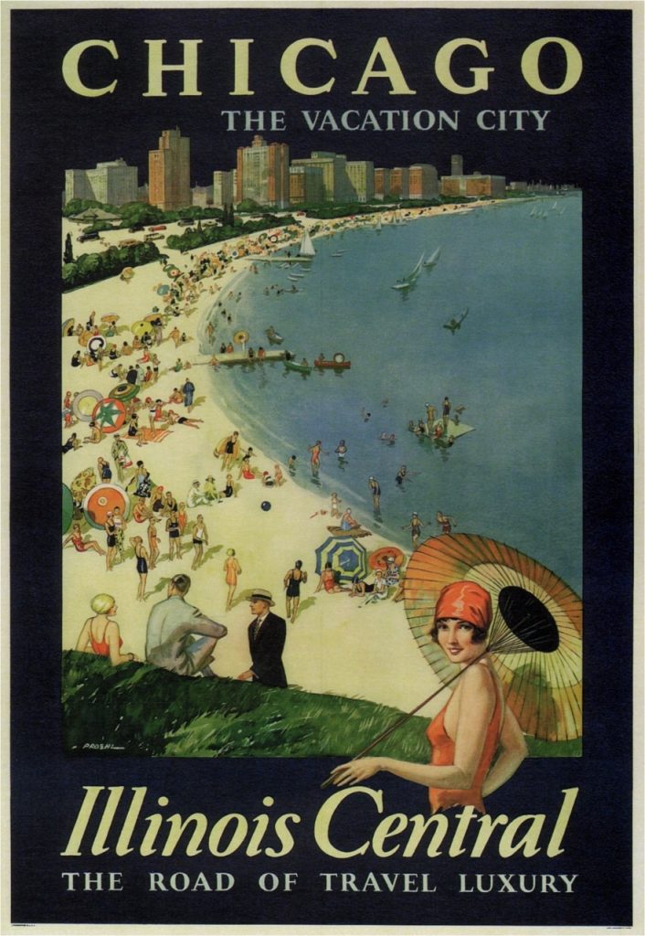 whataboutbobbed January 14, 2012 Chicago, The Vacation City, an Illinois Central Railroad poster by Paul Proehl, 1929