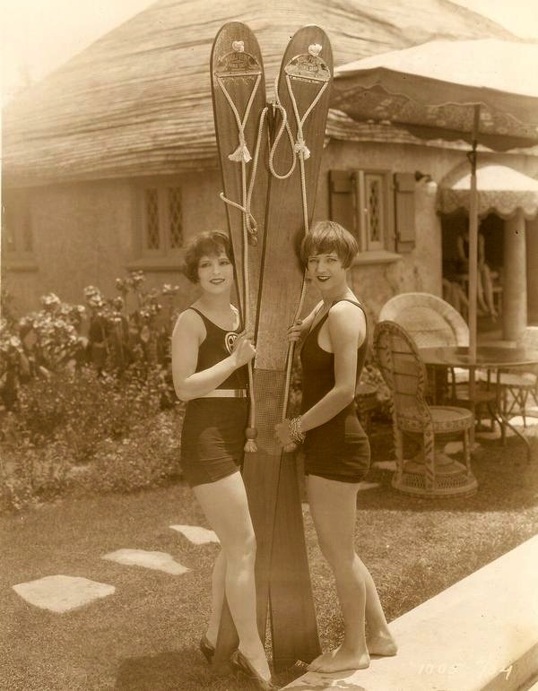 whataboutbobbed February 13, 2012 Clara Bow & Dorothy Mathews(?) modeling Dolphin Akwa-Skees in a publicity shot for Kid Boots