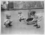 little children at the Kingsway Creche undergoing a course of sun treatment on the roof enjoying an impromptu game of cicket this morning