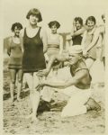 “My Grandma, nearing 80 and still living in Lake City, has wonderful stories and artifacts in her house. The other day I was going through some photos with her and found these snaps of girls on the beach in suits. She didn’t know any of the women but she said they were probably childhood friends of her mothers. I thought you might enjoy them. Unfortunately, I have no way of placing where they were taken. I especially love the one with the sailor that seems to be measuring a girls leg.”