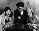 bottom – this photo shows a simple method of ‘table lifting’ which has deceived hundreds of persons at false seances, according to Satani. Frances Lee thinks her ‘psychic current’ is helping make the table ‘float’, but Satani is lifting it by means of a ring. The medium presses a secret button which raises a nail-like catch in the center of the table. The medium then lifts the table by hooking a groove in a flesh-colored finger ring-under the head of the nail