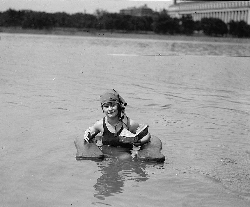 whataboutbobbed June 24, 2012 Muriel Quackenbush reading & smoking in a surf chair at Washington DC’s Bathing Beach, June 24, 1922
