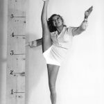 a real high stepper is Fred Astaire’s new dance partner, lovely Marjorie Reynolds (August 12, 1917 – February 1, 1997), who delivers the highest kick on record for a dancer of her height. Her record is 6 feet 7 inches and Marjorie is only 5 feet 3 inches tall. dated May 22, 1942