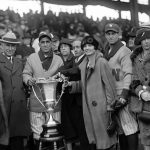 Washington Senators’ Roger Peckinpaugh receiving a cup of money from fans, October 10, 1925