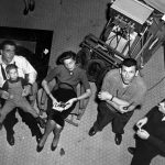 time out on the set of 1952’s Deadline – USA, and taking a breather are Humphrey Bogart with his wife, Lauren Bacall, and their son, Stephen, director Richard Brooks and Barton Yarborough