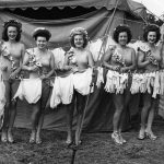 circus aerialists are not bothered by laundry problems. these famed aerialists are one of the many features of the Clyde Beatty Trained Wild Animal Circus. photo dated – May 6, 1946.