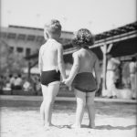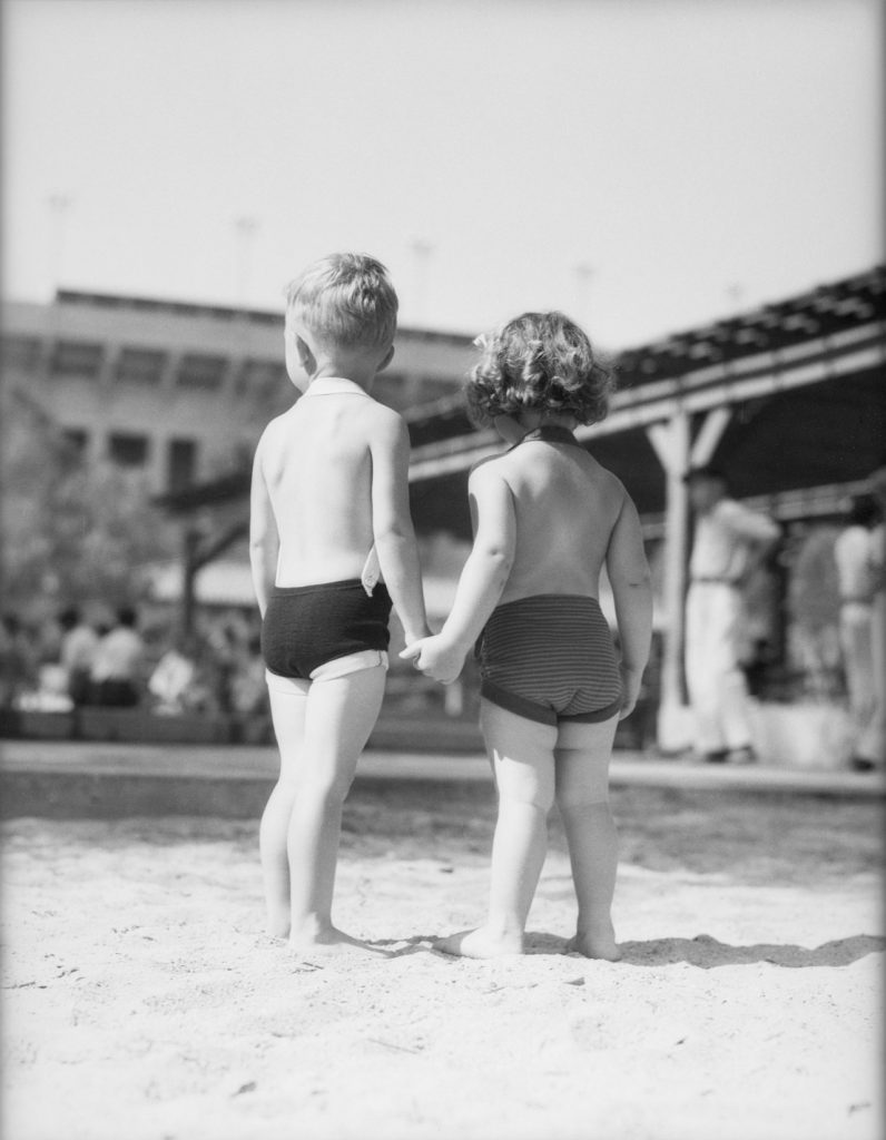 whataboutbobbed May 7, 2013 Donald Carter and Phyllis Fleischer wearing bathing suits and holding hands, Southern California, 1931