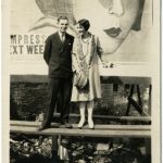 Lionel Barrymore and his Wife Irene Fenwick in Front of a Louise Brooks Billboard. – c1920s.- (Via)