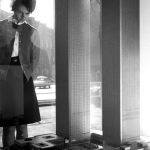 a spectator looks over a model of the World Trade Center, on which construction was getting under way in New York City, by Ted Rohde for Stars and Stripes, Frankfurt, Germany, March, 1965