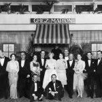 distinguished group of filmland notables at a welcome party honoring Marion Davies, famous star just returned from a three-month trip abroad. Standing, left to right, Lorraine Eddy, Matt Moore, Aileen Pringle, Louis B Mayer, Gloria Swanson, Harry D’Arrast, Miss Davies, Louella Parsons, Ricardo Cortez, Charlie Chaplin, Norma Shearer, Irving G Thalberg, Harold Lloyd and Robert Z Leonard. Seated in foreground are Harry Crocker, left, and William Haines. The French room of the Ambassador was transformed into likeness of a Parisian cafe for the surprise party greeting Miss Davies. photograph caption dated October 31, 1928