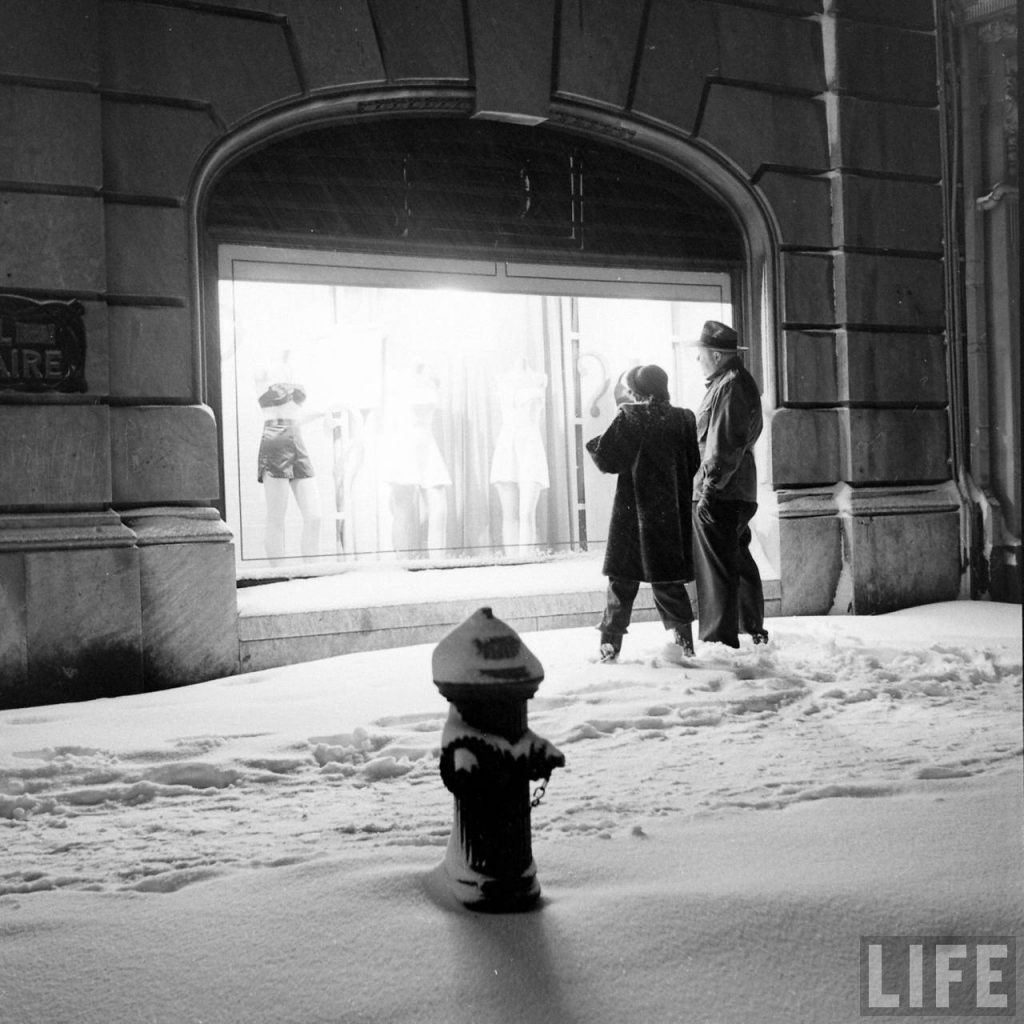 whataboutbobbed January 4, 2014 window shopping in a snowy New York City, Cornell Capa, December 1948