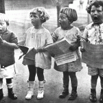 a group of children rehearsing Easter hymns before an Easter morning performance at the White House for US President Calvin Coolidge and the First Lady, Washington DC, circa 1925
