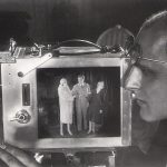 Film as microcosm in a camera. Probably a promotional still for a German movie, looks like the 1920s. The man in the central part between two women is German actor Gustav Fröhlich (1902-1987)