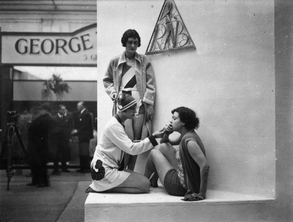 whataboutbobbed April 8, 2014 models from the drapery exhibition, sharing a cigarette during a break – April 8, 1929