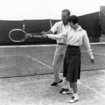 Where The Racket Meets The Ball – Louise Brooks, Paramount featured player, is learning tennis simply ‘because it’s fun’. Her teacher, Harvey Snodgrass, one of the country’s best players, demonstrates the correct grip of the racket, position of the racket and position of feet and body for the forehand drive