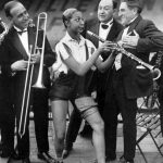 Josephine Baker, playing the clarinet at the Caf’ Conc Festival at the Stade Buffalo Velodrome, Montrouge, Paris, 1926. FĂȘte des Caf’ Conc’ is an annual charity event in aid of retired performers’ benevolent fund. photo by Roger Viollet