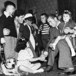 left to right – ‘Alfalfa’ Switzer, Hal Roach Jr, ‘Porky’ Lee, ‘Spanky’ McFarland, Vittorio Mussolini, Baby Patsy May (on Vittorio’s knee) and Darla Hood with Pete The Pup