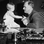 Chief Executive Receives First ‘Buddy’ Poppy – Little Muriel Morgan came from the Veterans of Foreign Wars Home for Widows and Orphans of ex-services men in Faton Rapids, Michigan, to present President Roosevelt with the first Buddy Poppy to officially open the 1934 National Poppy Sale conducted by the Veterans of Foreign Wars. James E. Van Zandt, Commander-in-chief of the VFW, is also shown in the photograph