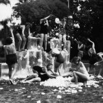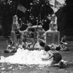 a snow fight at the Huntington Hotel in Pasadena, using snow brought down from the mountains