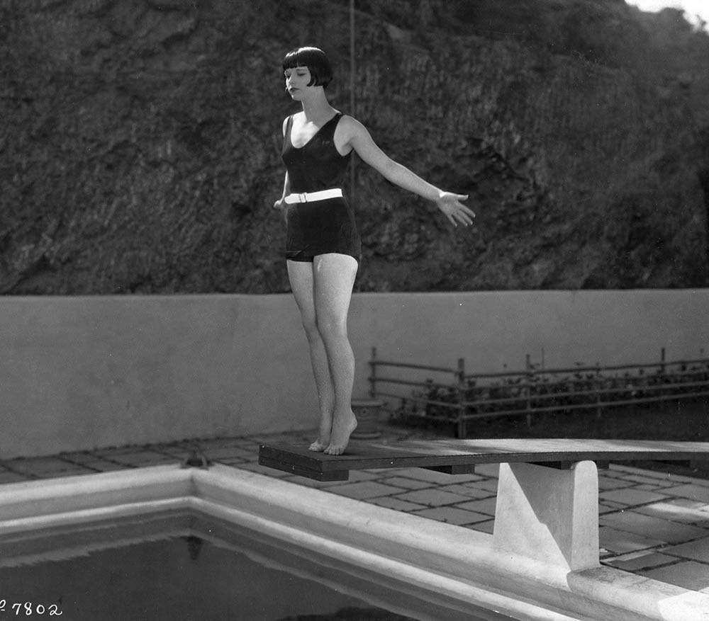 Louise Brooks goes for a dive, at home in Laurel Canyon, 1927