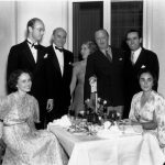 August 1935 dinner at Pickfair. from left – Frances Howard / Mrs. Samuel Goldwyn (seated), John Abbott, Samuel Goldwyn, Mary Pickford, Jesse Lasky, Harold Lloyd, Iris Barry (seated)