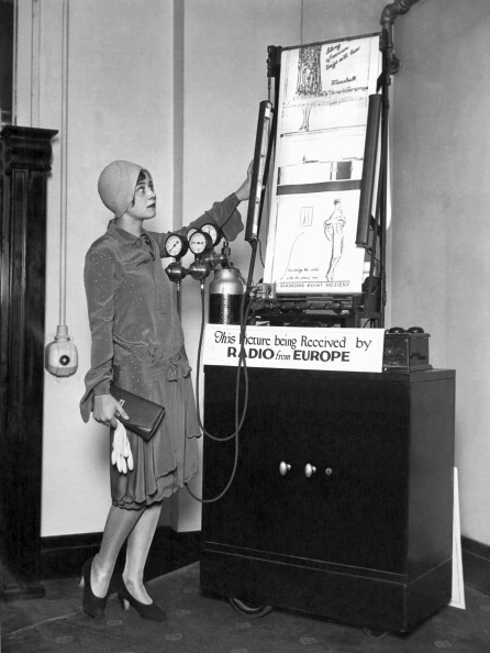 whataboutbobbed October 8, 2015 a woman watching the the new radio photo machine as the latest styles and fashions are sent over from Paris, Chicago, Illinois, October 8, 1927
