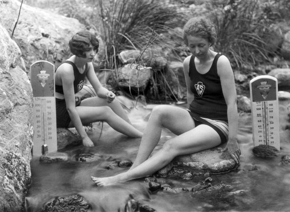 whataboutbobbed November 17, 2016 having a sit in the warm curative mineral wells at Arrowhead Springs outside of Los Angeles, Arrowhead Springs, California, November 17, 1926