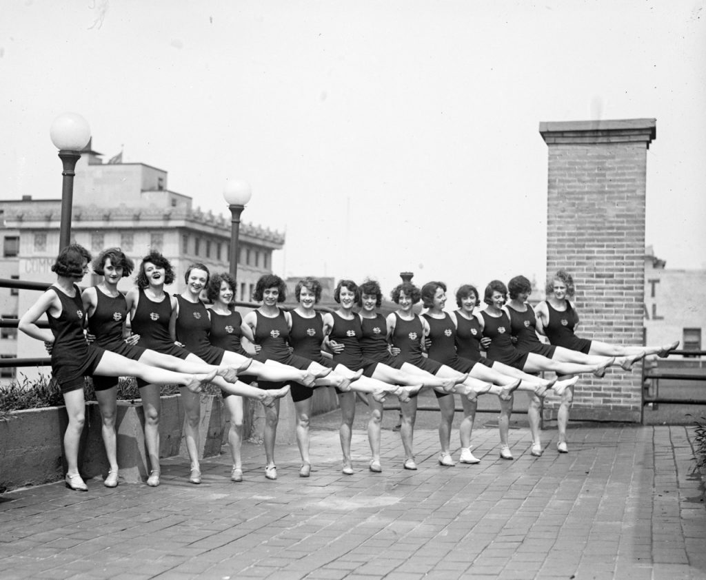whataboutbobbed November 22, 2016 The Sunshine Girls (aka The Tiller Girls) catch some rays on a Washington DC rooftop, July 1923