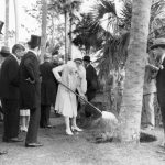 whataboutbobbed February 3, 2017 First Lady Grace Coolidge, wields a shovel and helps plant a palm tree at the dedication of the Mountain Sanctuary and Singing Towers, Mountain Lake, Florida, February 3, 1929. They are a gift from Edward Bok to the American people