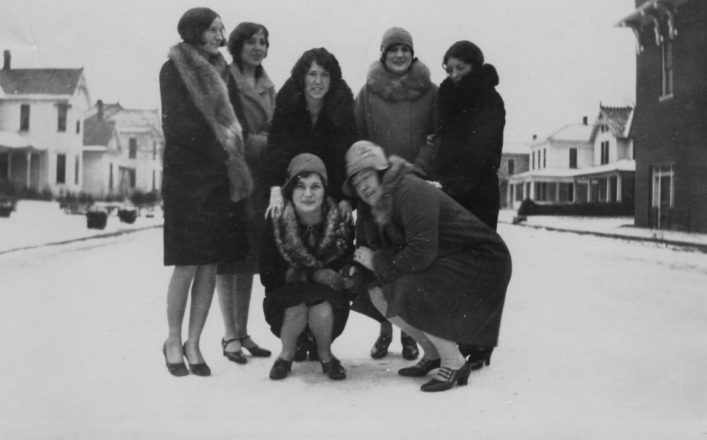 whataboutbobbed February 9, 2017 yesterdaysprint: Ladies outside in the snow, Austin, Texas, ca. 1925