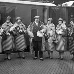 whataboutbobbed April 20, 2017 Paul Poiret and his models arrive at the train station in Copenhagen, 1925