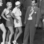 Hollywood, California – Theatre followers can remember the excitement in New York when the late Flo Ziegfled would send a ‘call’ for chorus girls. The same buzz of expectancy prevails in Hollywood when Busby Berkeley, noted dance director, hangs out the shingle ‘talent wanted.’ He is shown looking over some of the beautiful girls needed to make up the chorus of 100 for a forthcoming cinema