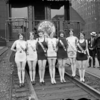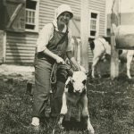 Montgomery County Historical Society’s Women’s Land Army of America, 1918-1923 collection documents the experiences of the women who chipped in and took charge at local farms during World War I. In this photograph, “Farmerette” Miss Jane McIlheney from Washington, D.C., wrangles a calf on a farm in Rockville, Maryland around 1918, courtesy of Montgomery County Historical Society via Digital Maryland.