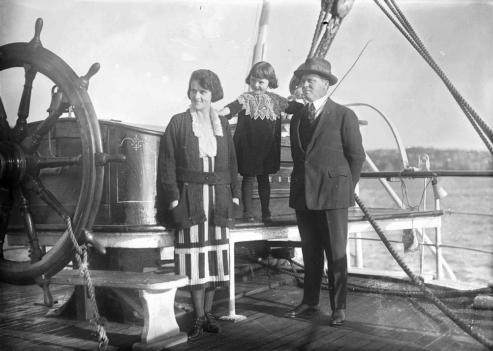 whataboutbobbed July 14, 2017 Ethel May Sterling, Margaret Francis Sterling and Captain Ray Milton Sterling on the deck of E.R. Sterling, circa 1922