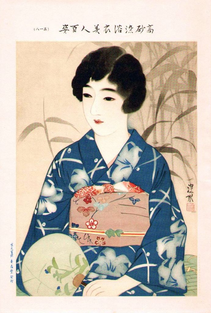 whataboutbobbed July 26, 2017 No. 18- Bijin in Yukata with Fan Series by Ito Shinsui 伊東 深水, circa 1931