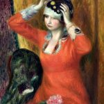 whataboutbobbed November 2, 2017 Girl in Red Dress Pinning on Hat by William James Glackens, circa 1915–1916
