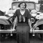 whataboutbobbed June 4, 2018 Mary Feeney of Kensington, Maryland sits on bumper of unidentified car license plate is DC appears to be style issued from 1928-1932