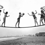 whataboutbobbed June 29, 2018 members of the Venice Beach Girls Dare Club, a group of bathing beauties who do a new stunt every Sunday, playing tightrope basketball, Venice, California, 1929