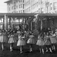Clayton F. Smith, Deputy Commissioner of City Works, and his wife, nee Mayme Paschen, looking toward the camera, standing next to a ballot box at a voting poll center in a room in Chicago, Illinois, 1928. Mrs. Smith is dropping a ballot in the box, and Mr. Smith is holding a ballot. An unidentified woman is standing next to Mrs. Smith, and men are standing in the background. One of the men is a police officer