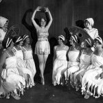 Standing, left to right, Janet McCoy, Solita De Yo (a.k.a. Eunice Pringle) and Jean McCoy. The kneeling chorus includes, left to right, Ann Curtis, Elinor Wilhoit, Maxine Dineen, Sara Van Buskirk, Nancy Burney, Helen Bohr, Iva Frazer