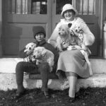 Billie Burke Ziegfeld and her daughter Patricia with the household pets, Isabelle, Ziegy, Budge and Toddy, on her estate at Hastings-on-Hudson, New York, December 1923