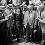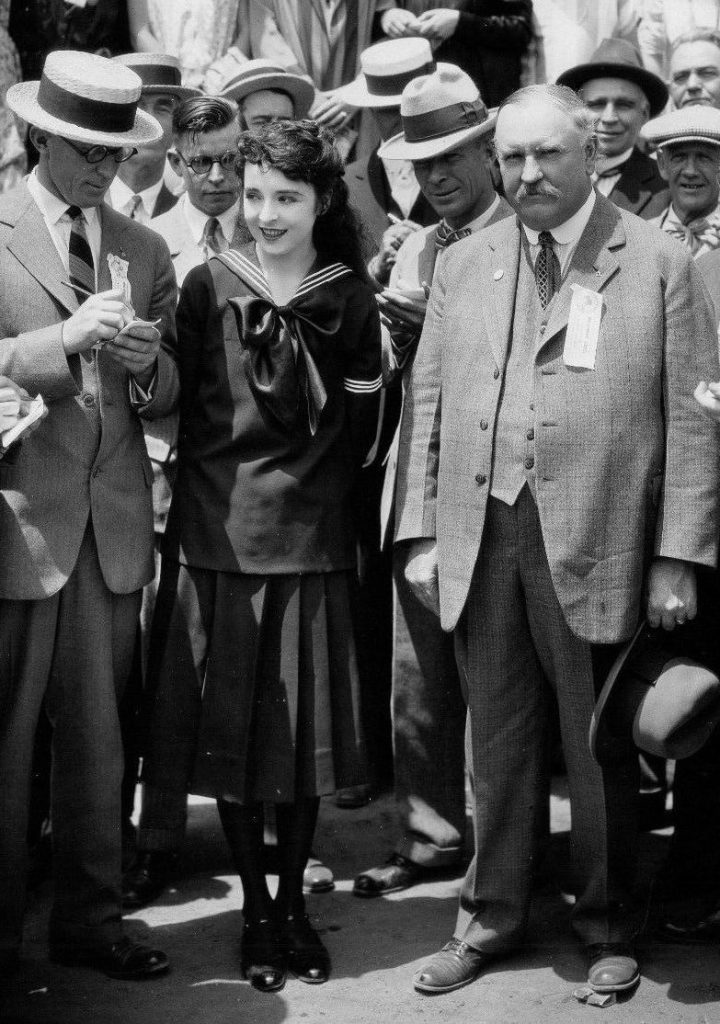 This will probably be the biggest interview Colleen Moore, First National star, will ever get. Three hundred editors, forming the membership of the California Editorial Association headed by California Governor Friend Richardson, paid the star a visit and watched her work on 1925′s We Moderns. Here’s Colleen with the governor answering questions hurled at her from the visiting newspaper chiefs