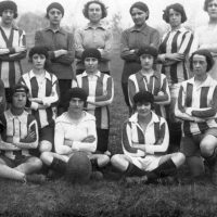 Babe Ruth and his family celebrate his 40th birthday at their home in New York, February 6, 1934. The family is shown around the piano singing “Happy Birthday,” from left to right: daughter Dorothy, wife Claire, the Babe, and at the piano is daughter Julia