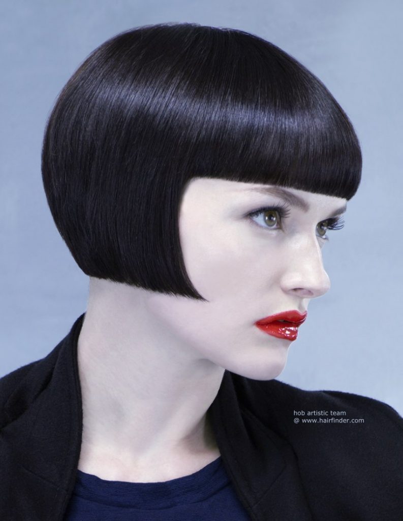 A perfectly blended bob hairstyle that is cut to lay just over the ears compliments the warm brown tones in the hair in this picture. Every line is smooth and […]
